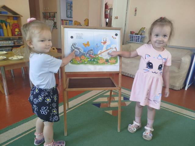 Воспитатели читали детям русские народные сказки. Дети, с интересом слушали, рассматривали иллюстрации и активно участвовали в беседе.