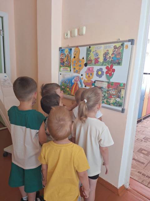 В группе был оформлен тематический уголок, где размещены изображения героев сказок, а также элементы художественного творчества детей — аппликации и рисунки.