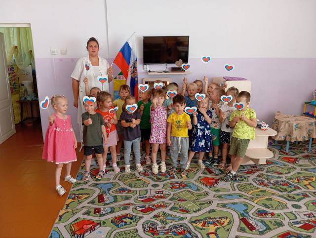 Малыши узнали о значении цветов российского флага и своими руками создали аппликации сердечек в цветах триколора.