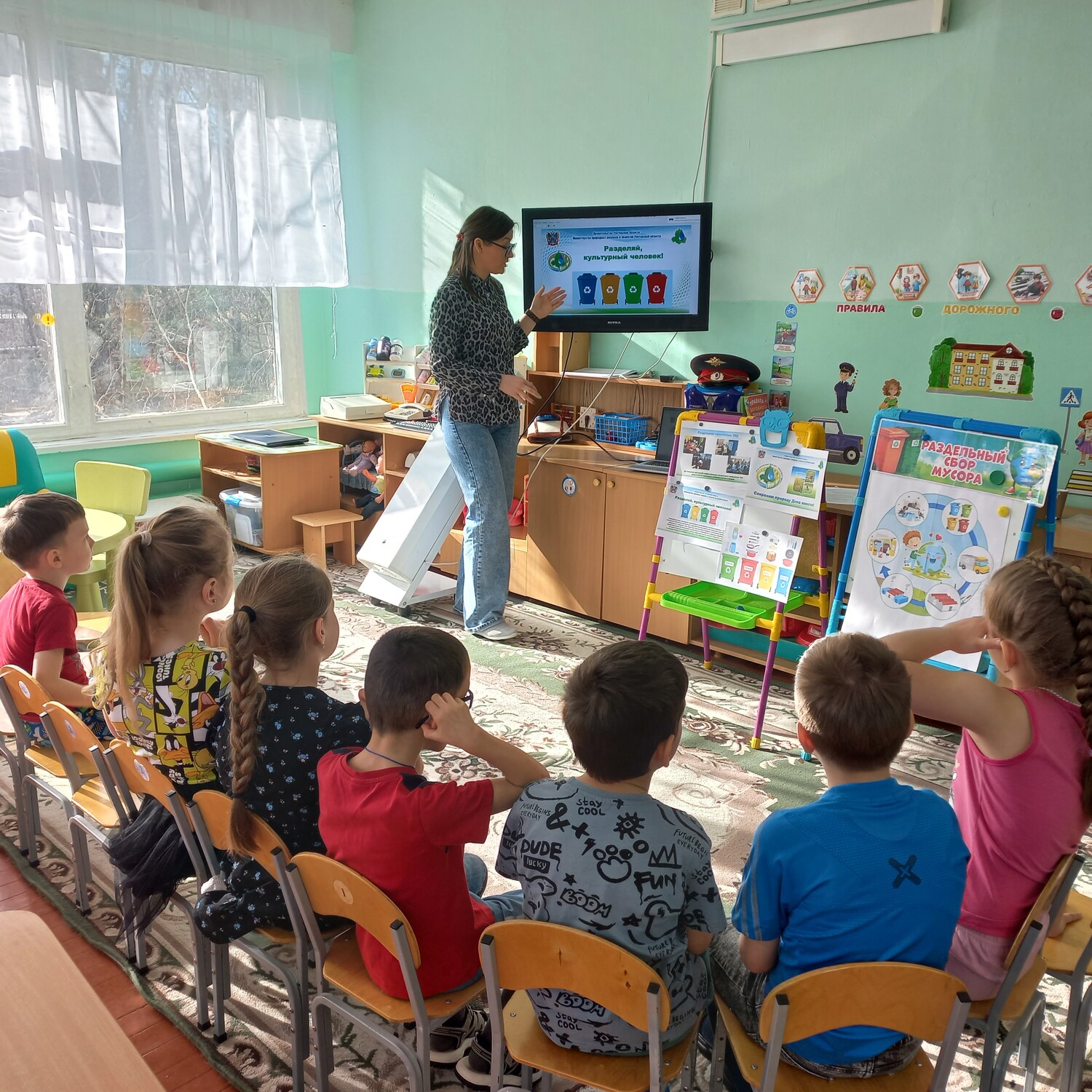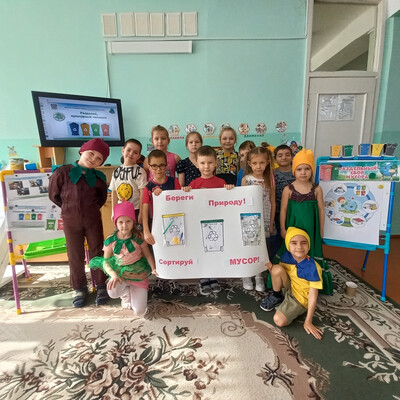 Эколята провели увлекательную игру «Сортируем мусор», в которой дети с радостью участвовали, отвечали на вопросы и учились правильно сортировать отходы. В завершение занятия ребята создали плакат с призывом «Береги природу! Сортируй мусор!».