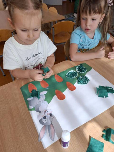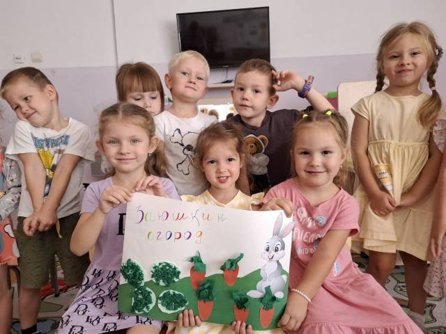 В конце недели ребята создавали общий макет огорода, на котором размещали сделанные из аппликации овощи. Создание "Заюшкиного огорода" способствовало развитию навыков сотрудничества и командной работы.