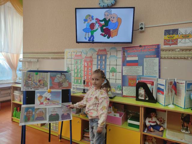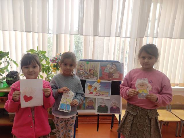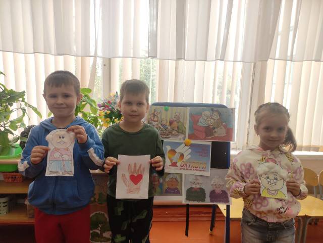 Воспитатель Лидия Александровна Карфидова познакомила детей с символикой праздника. В процессе беседы ребята освоили смысл логотипа (ладонь — доброта и помощь; сердце в ладони — любовь и забота) и творчески выразили своё отношение к старшему поколению через аппликации.