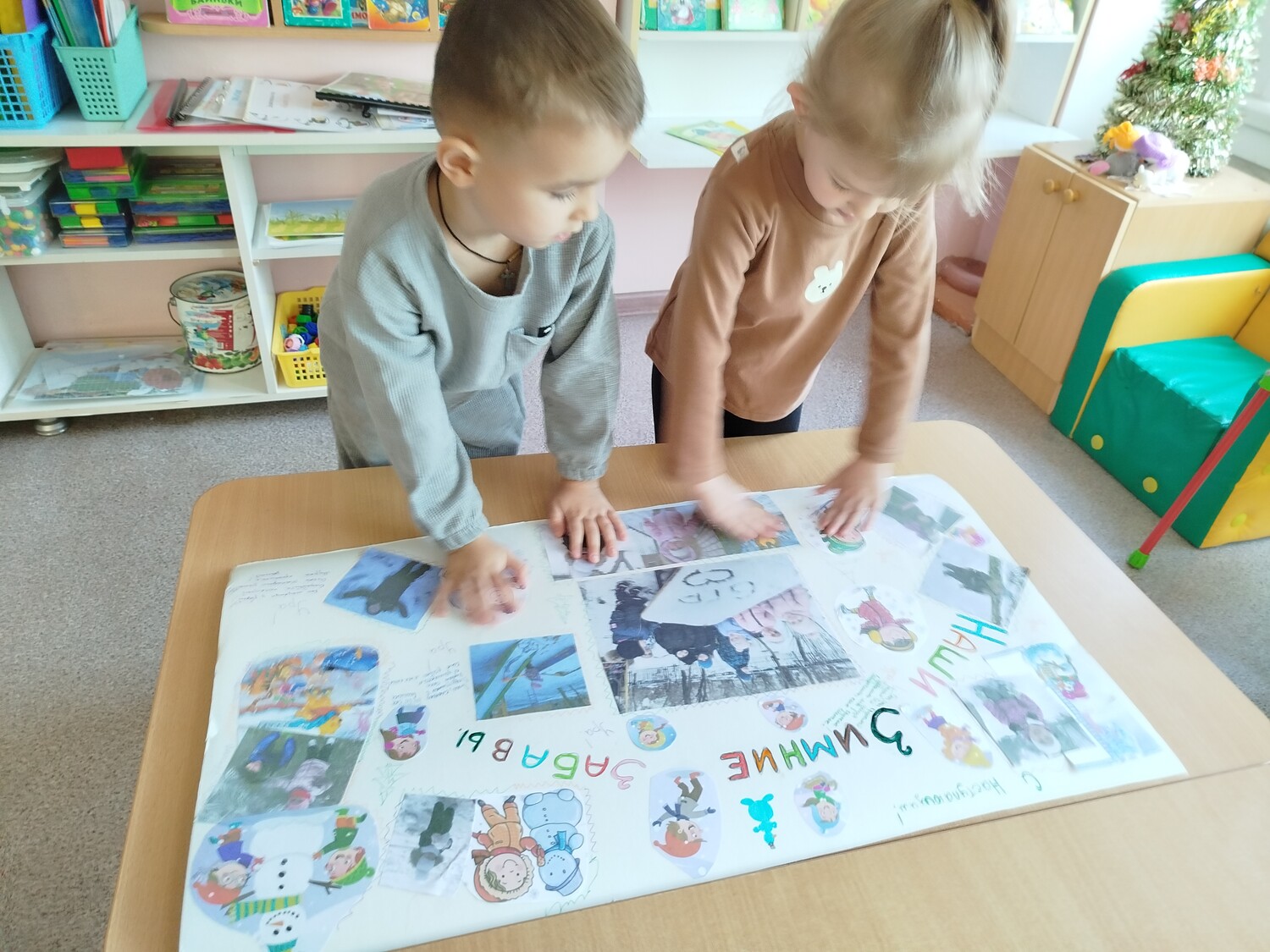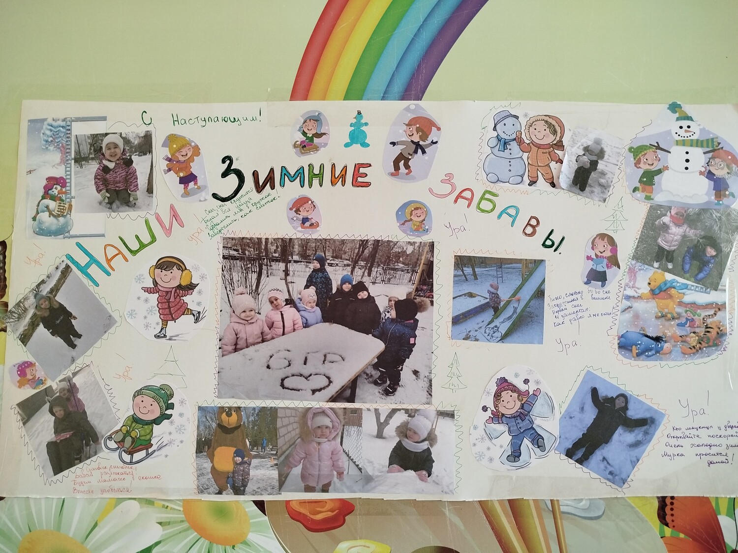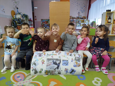• итогом недели стало создание дружной группой «Солнышко» яркой стенгазеты, посвящённой зимним забавам.